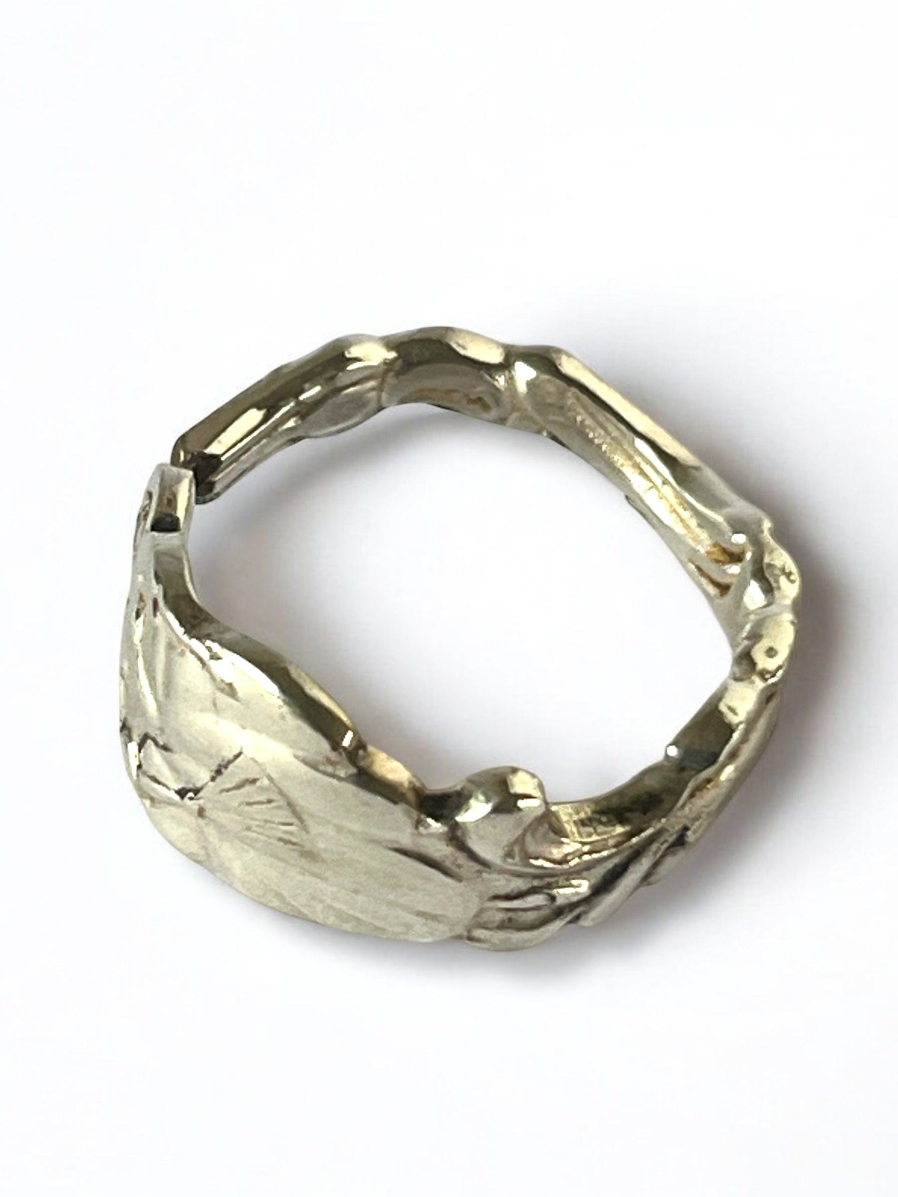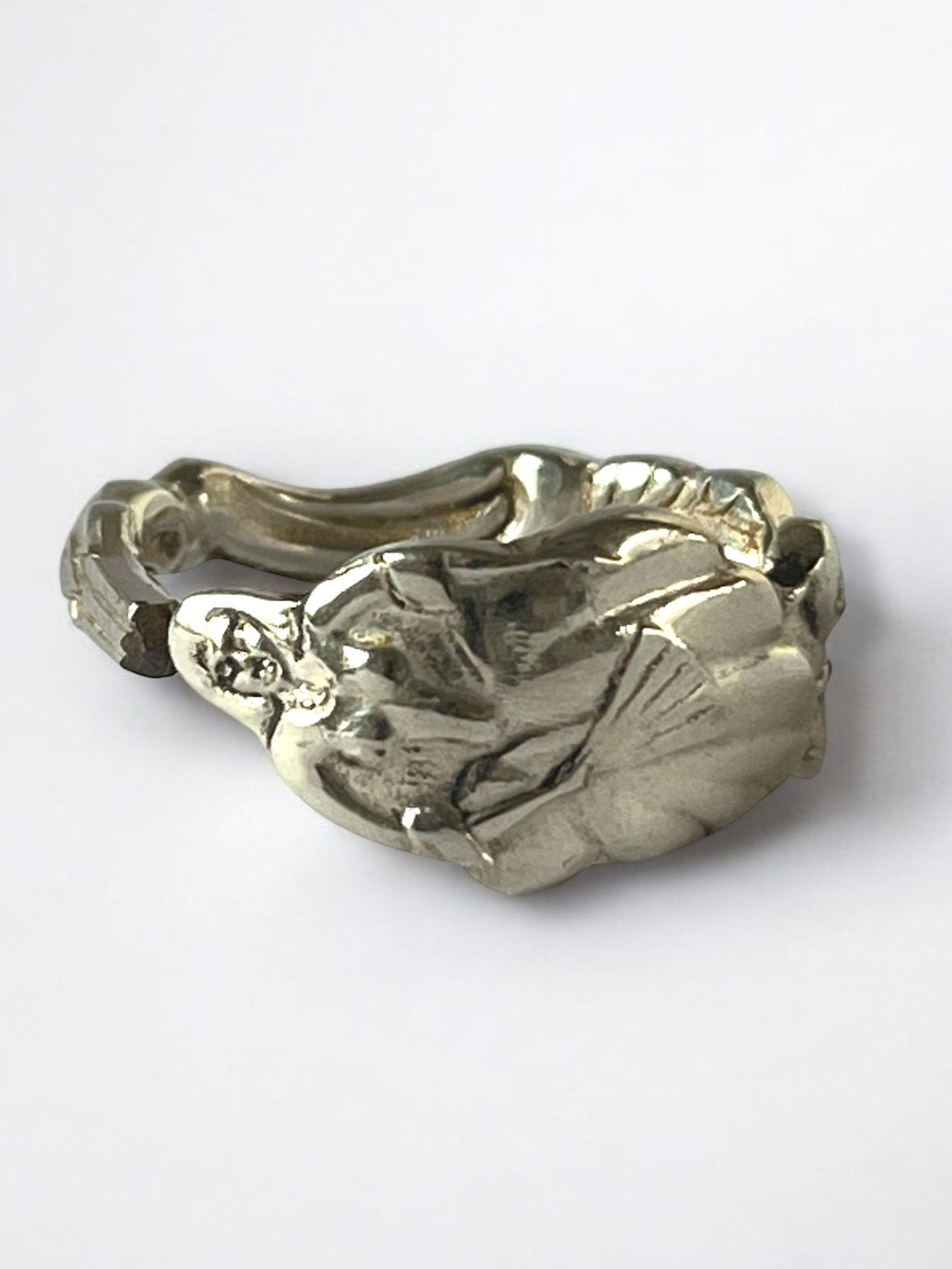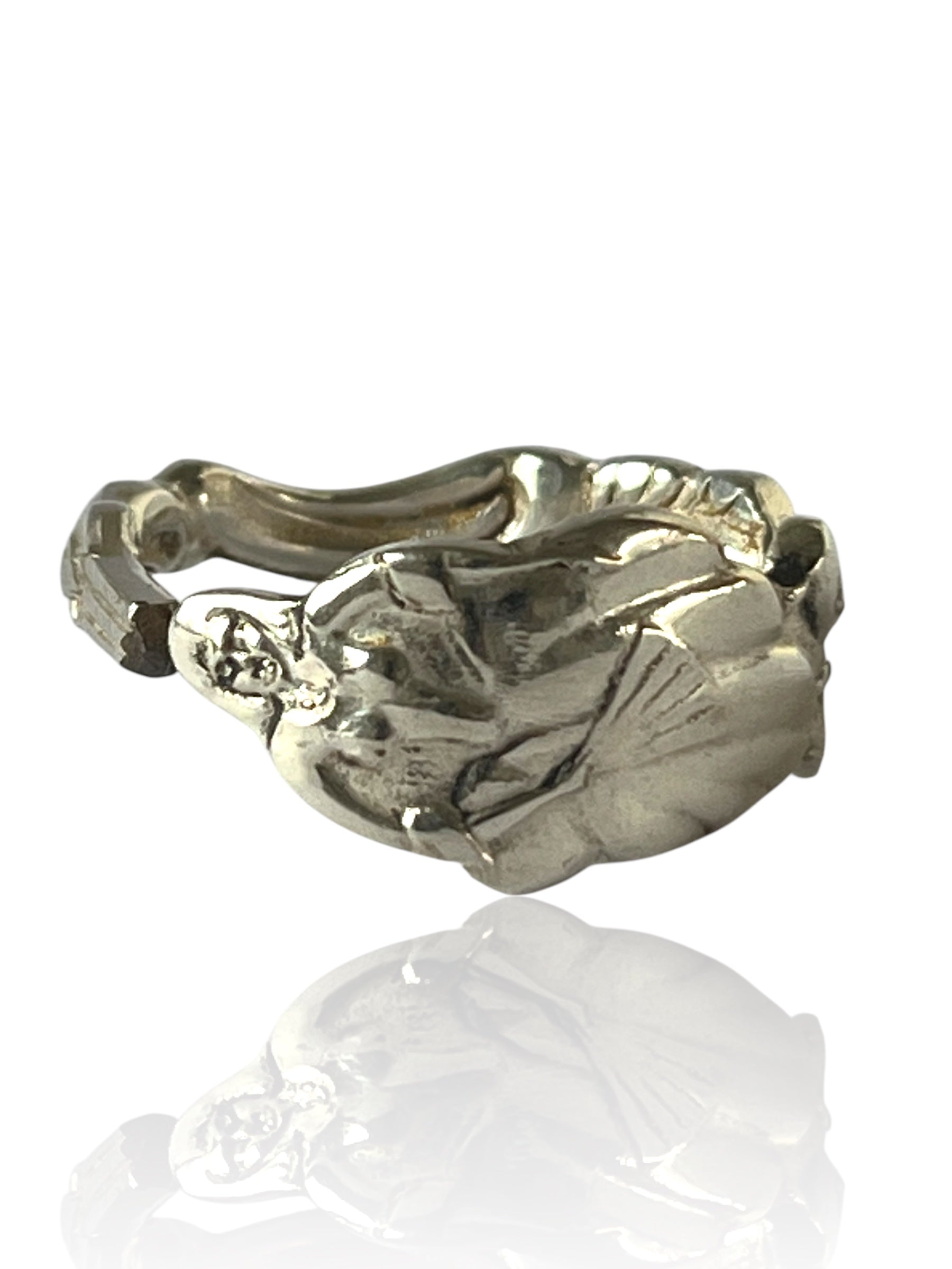 Denne unikke ring er håndlavet af antikt sølvbestik og bærer navnet Ulla Winblad – en hyldest til kærlighed, poesi og svensk kulturarv. Inspireret af Carl Michael Bellmans ikoniske Fredmans epistler bringer den et strejf af 1700-tallets romantik til nutiden.